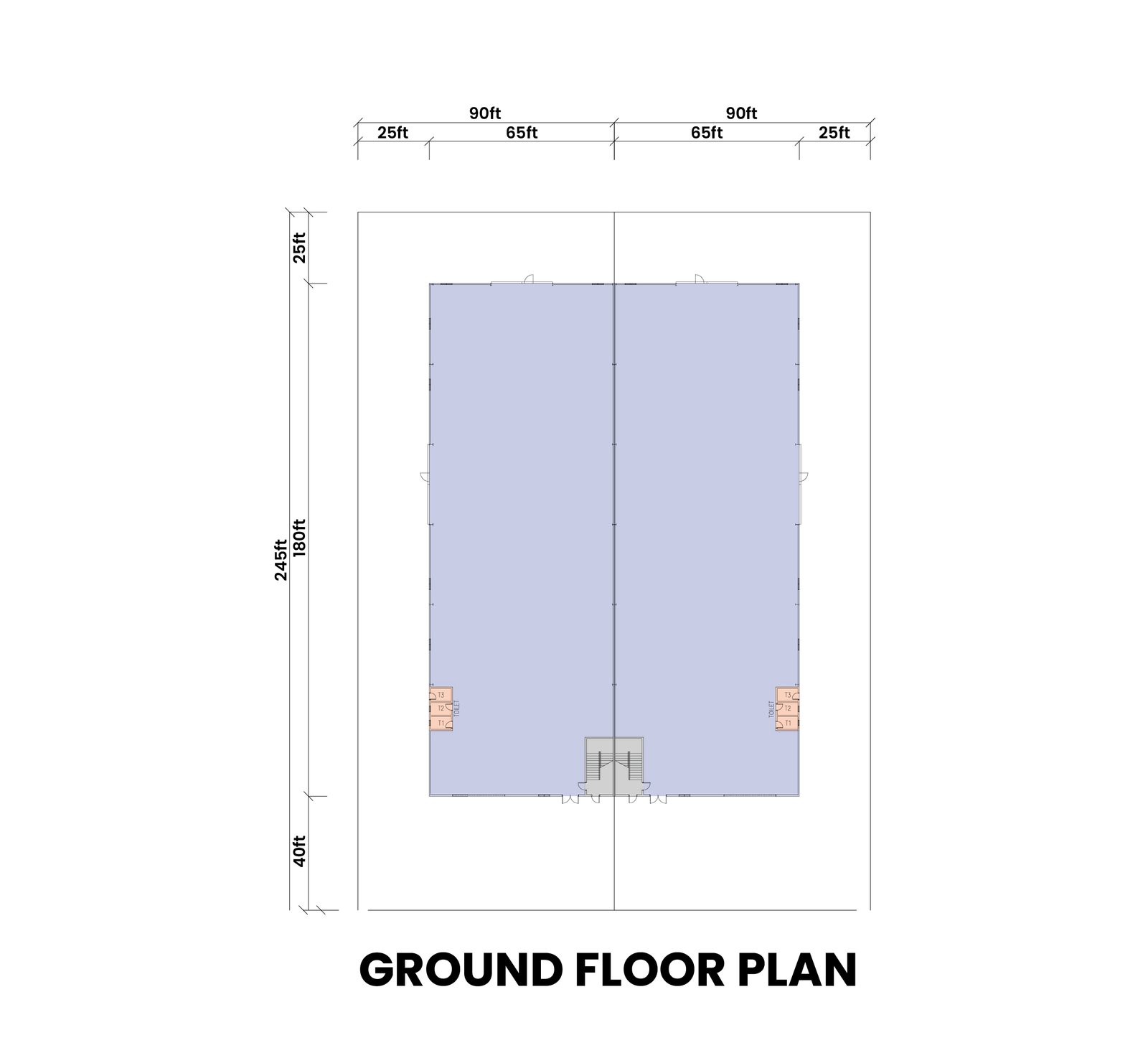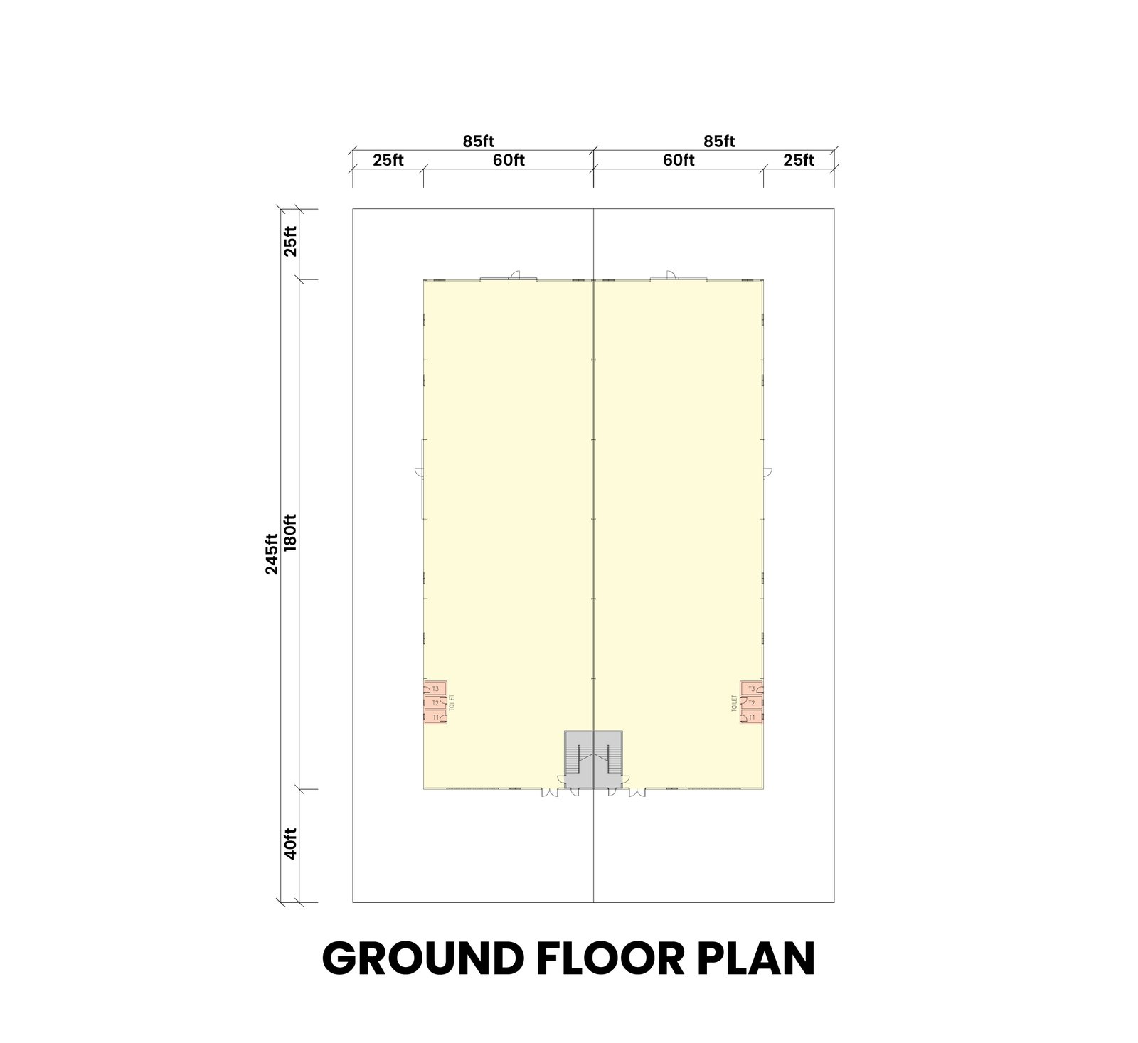 Functional design with wide production space, high ceilings, and spacious layouts to support efficient industrial operations.